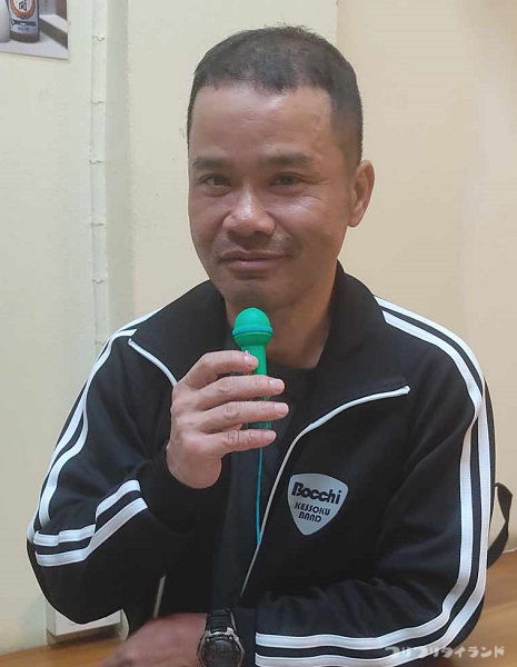 まずは、コウちゃんを送って行ったので、少し遅れて登場した総合司会のテッチャンが開会を宣言。(バンコク トンローソイ3の「居酒屋・集い」)