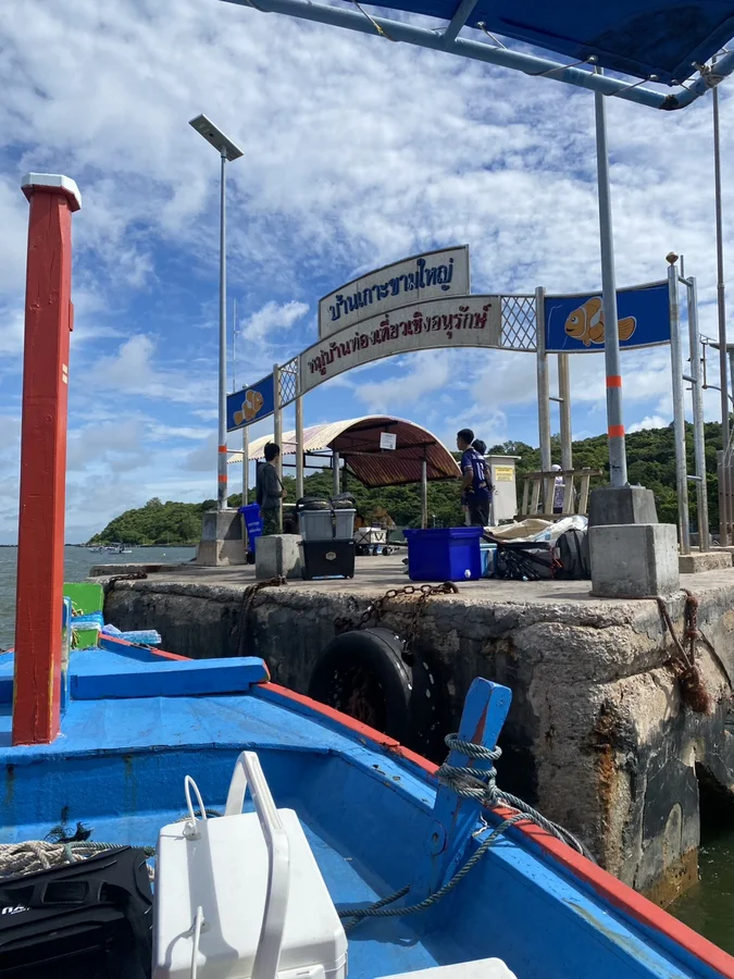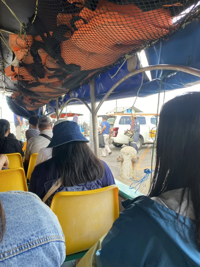 今回は釣行メンバーが少なかったのでいつものアオウドムからの出港ではなく、シラチャ・ロイ島の連絡船乗り場から連絡船でカムヤイ島に渡り、そこから釣り船に乗船します。