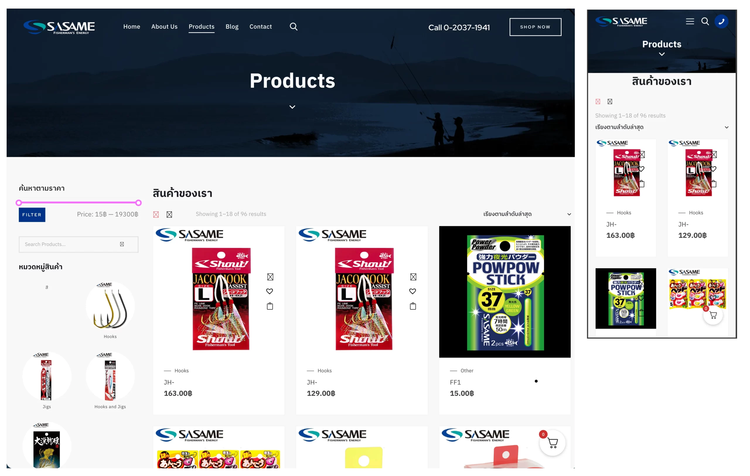 日本の釣具メーカー「ささめ針(ささめ針・ヤイバ、Shout!/シャウト、RYUGI、JUNGLEGYM)」のタイ現地法人「SASAME THAILAND(ささめタイランド)」のホームページにWEBショップができました!