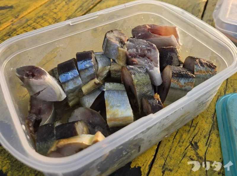 ちなみに船長はかならず冷凍の魚エサ持ってます。